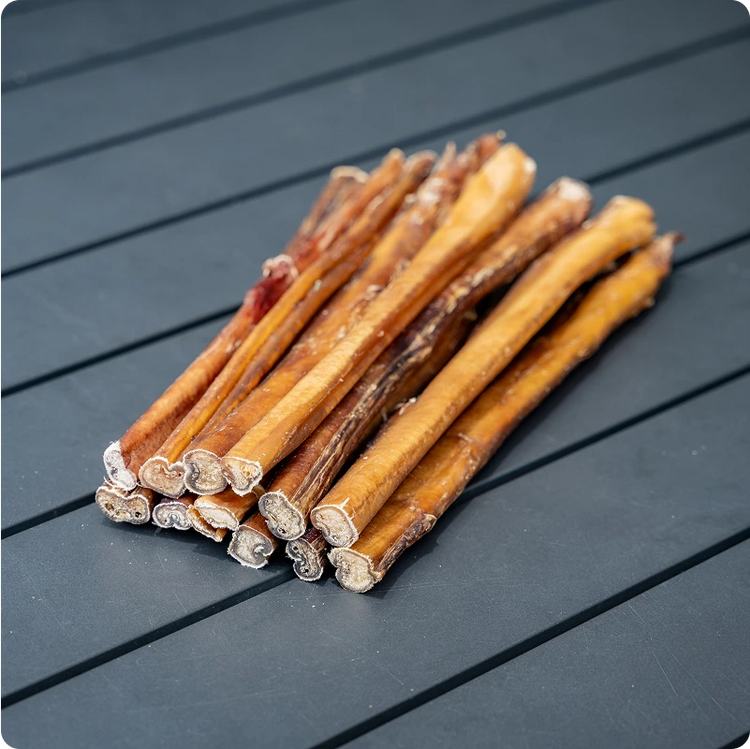 Bully sticks are 100% beef muscle treats made from bull pizzles. They're dried which creates a long-lasting, highly digestible chew that most dogs go crazy for. Unlike many processed treats, they contain just one natural ingredient.